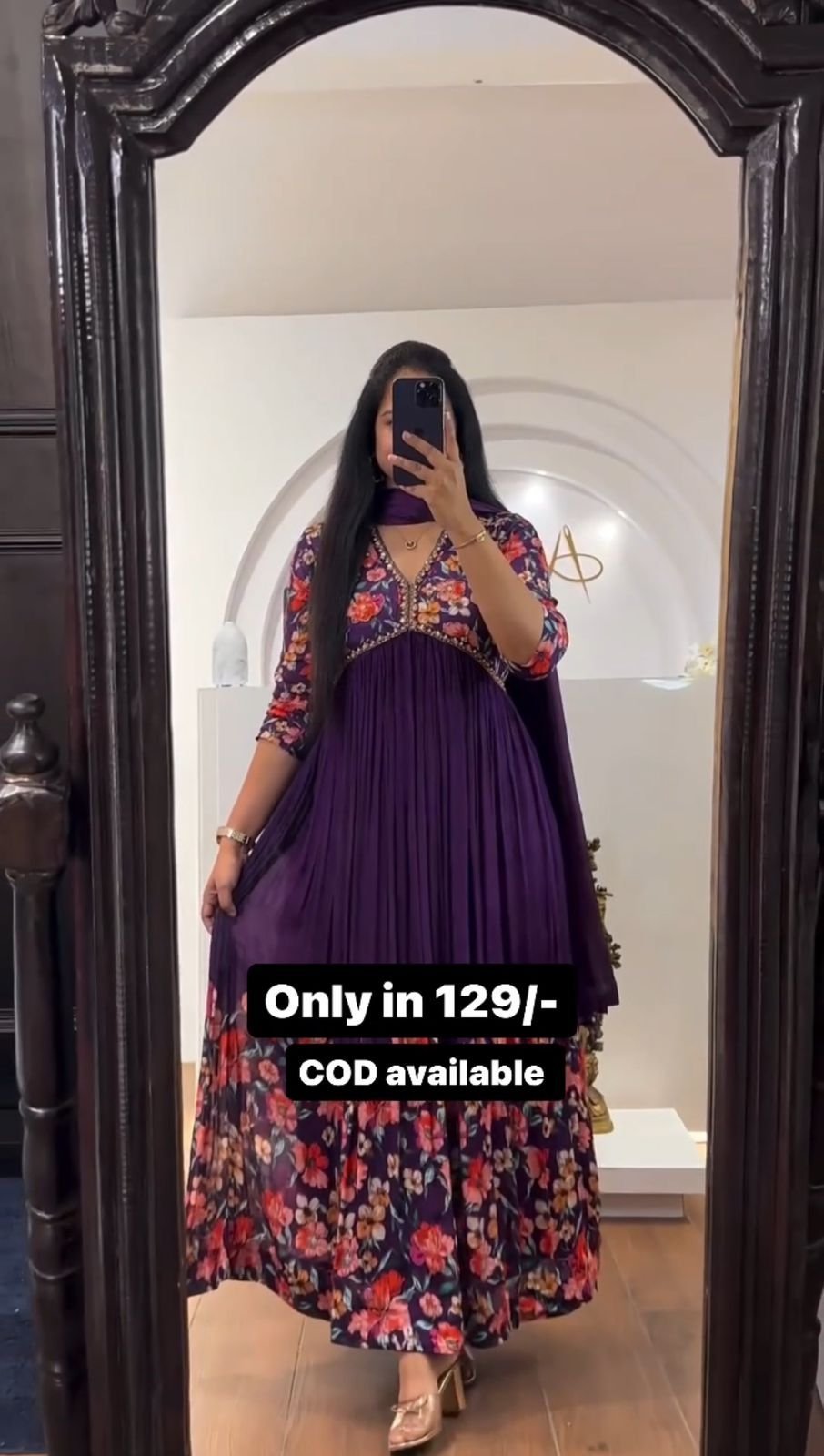 Purple Color Floral Print Anarkali Gown With Dupatta